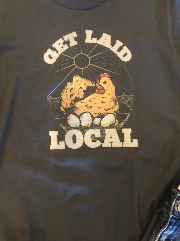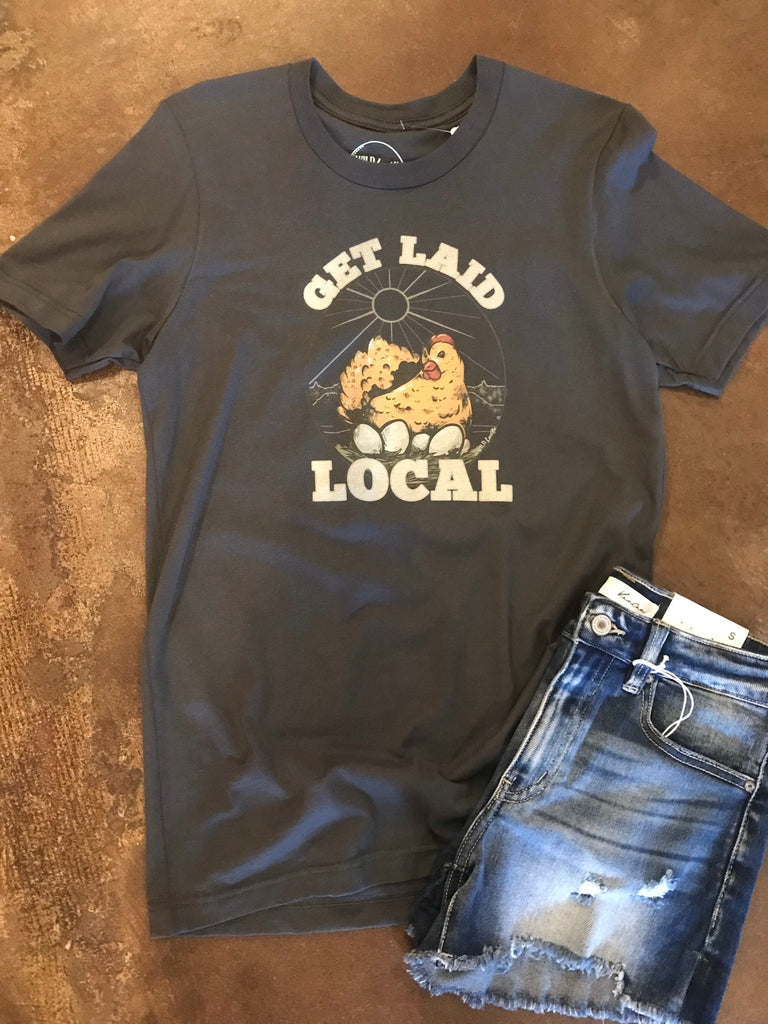 Charcoal “Get Laid Local” chicken graphic print crew neck short sleeve tee